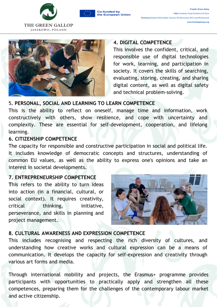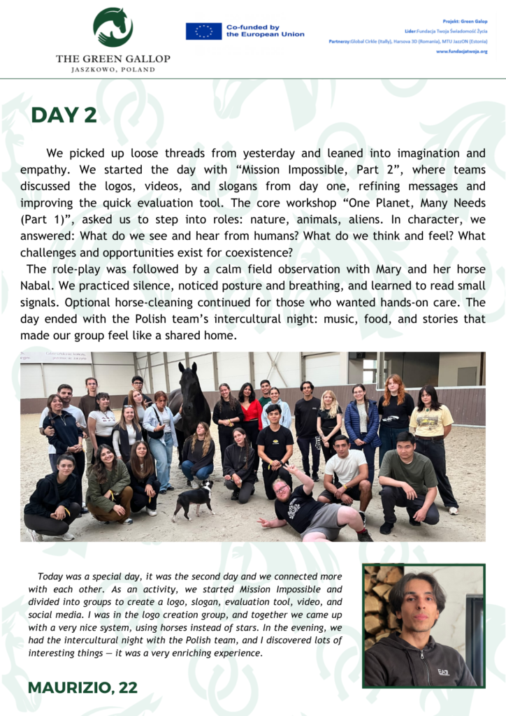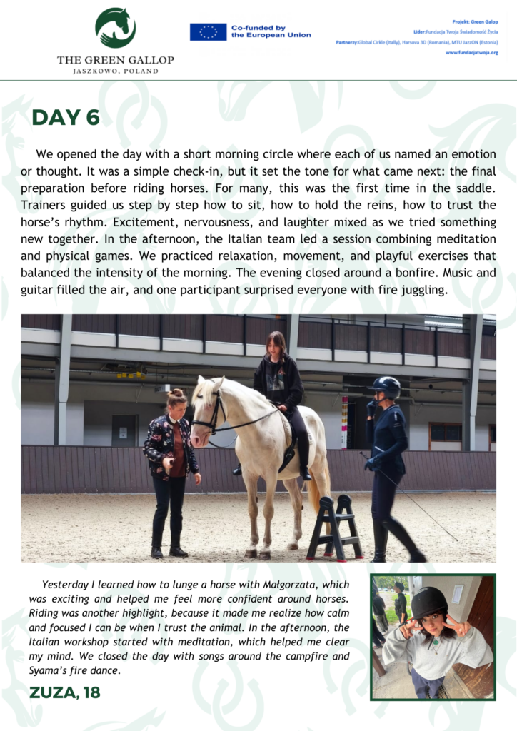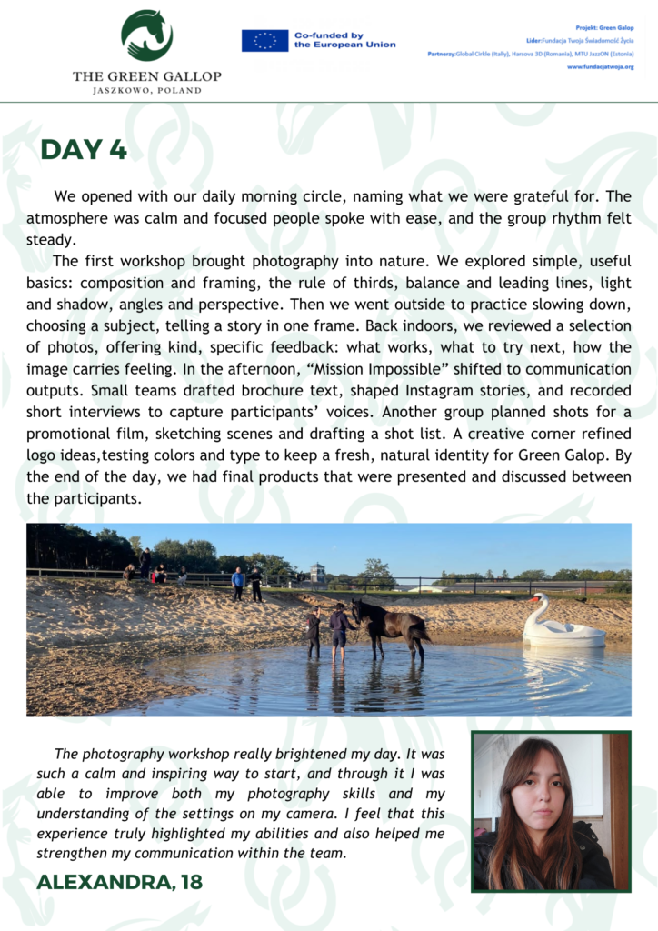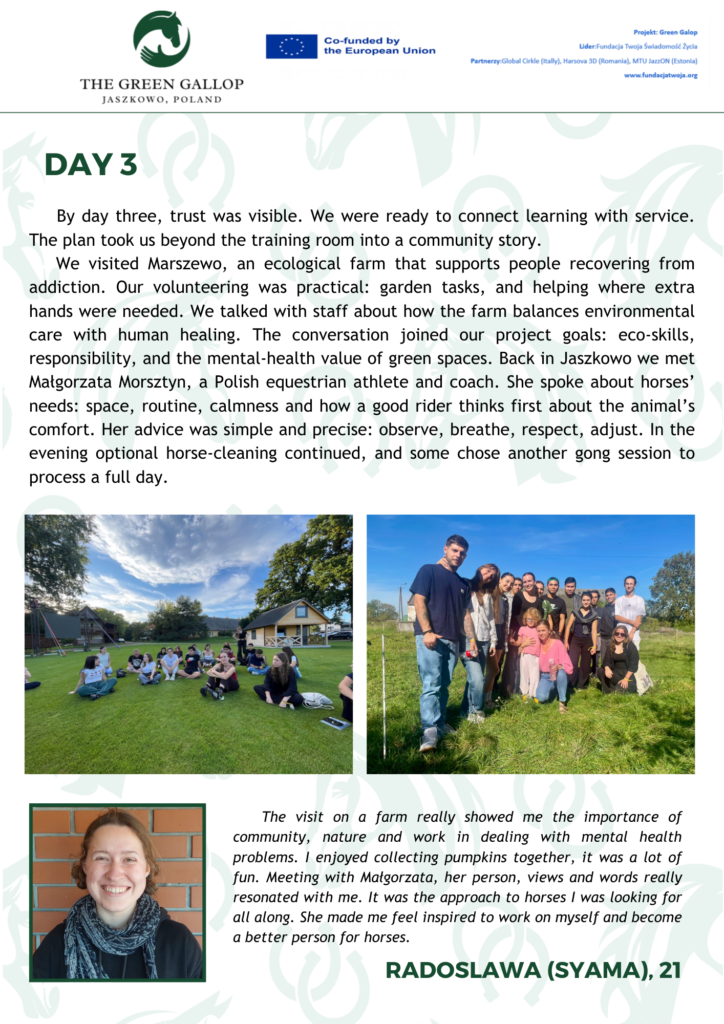 GREEN GALLOP BROCHUREang Broszura To efekt pracy uczestników projektu Green Gallop Jaszkowo 2025, który odbył się w dniach 18-24 wrzesnia 2025 w Centrum Hipiki Jaszkowo