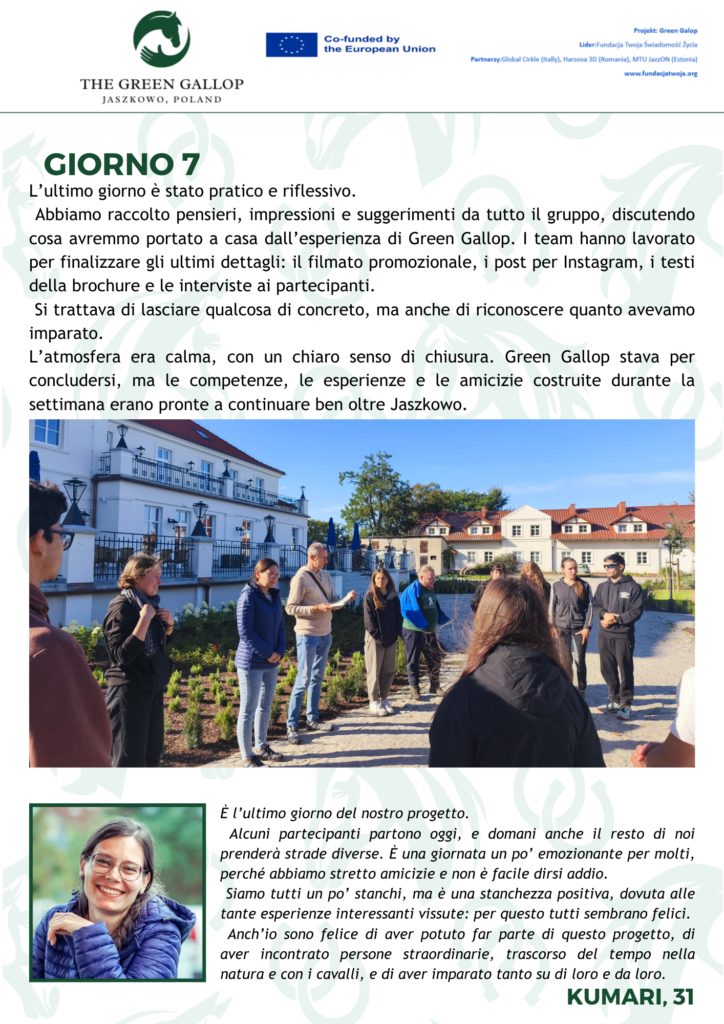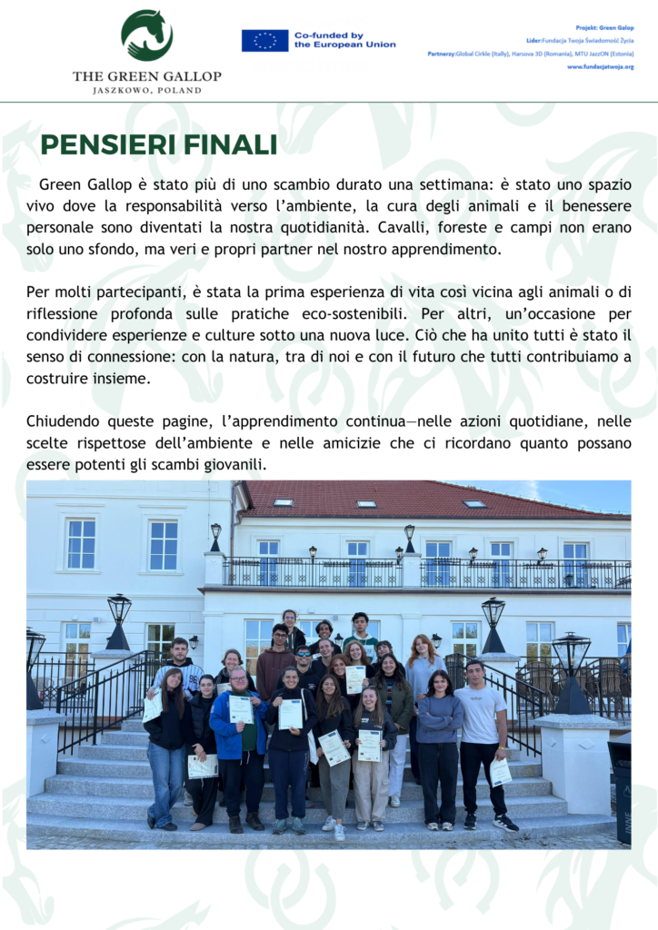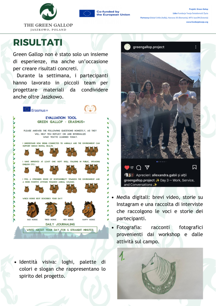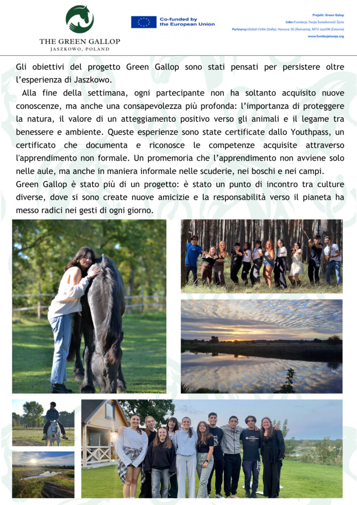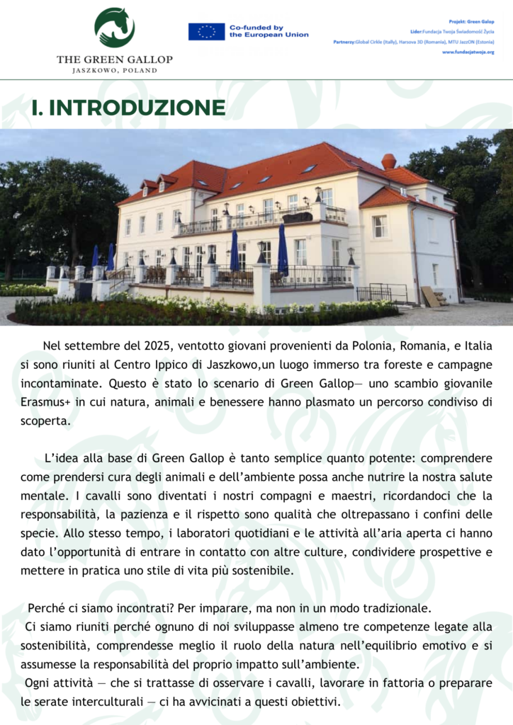 _GREEN GALLOP BROCHURE ITA Broszura To efekt pracy uczestników projektu Green Gallop Jaszkowo 2025, który odbył się w dniach 18-24 wrzesnia 2025 w Centrum Hipiki Jaszkowo