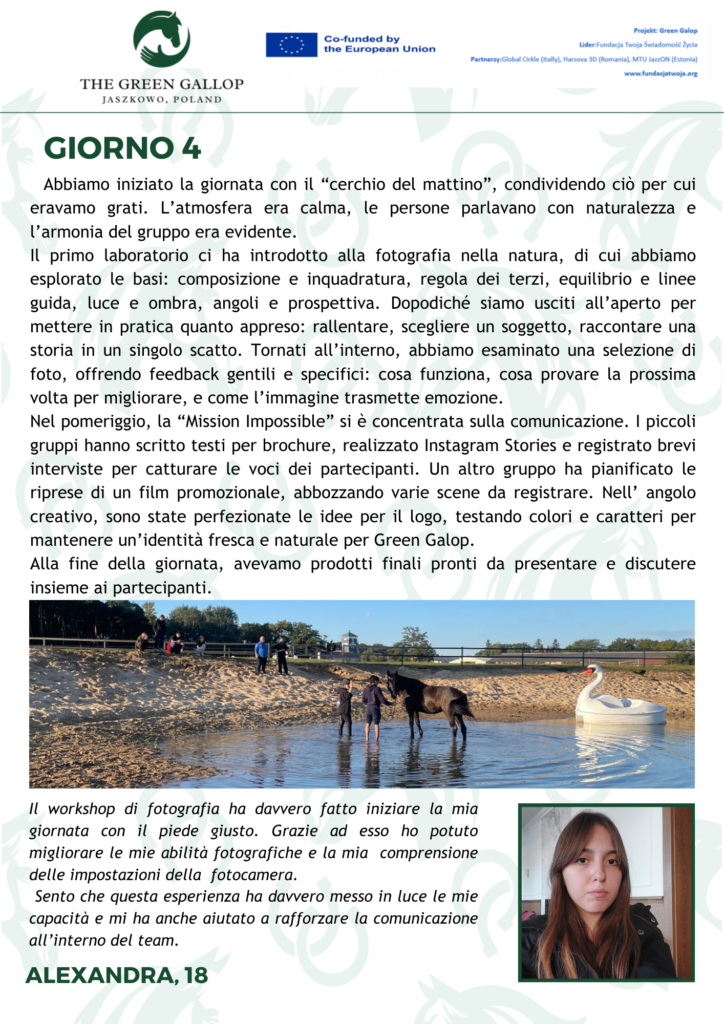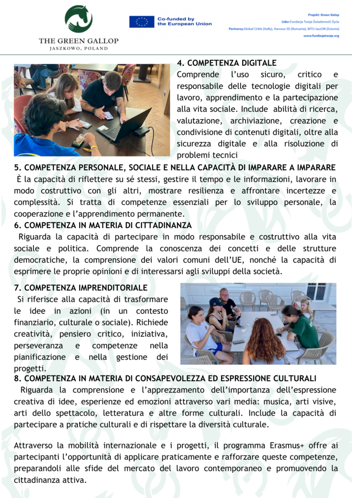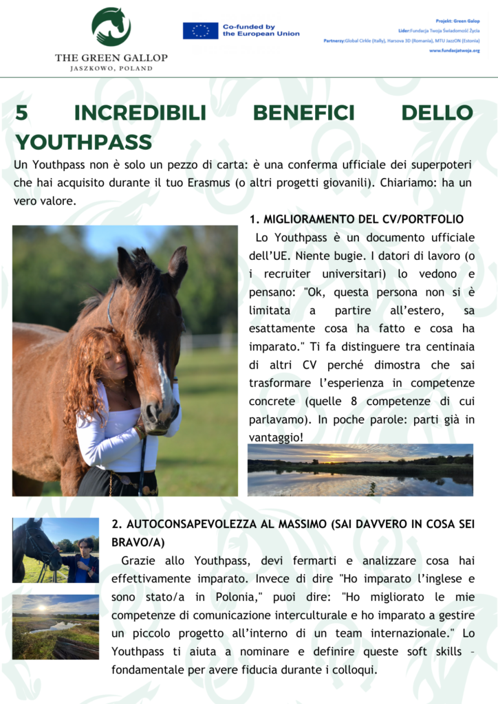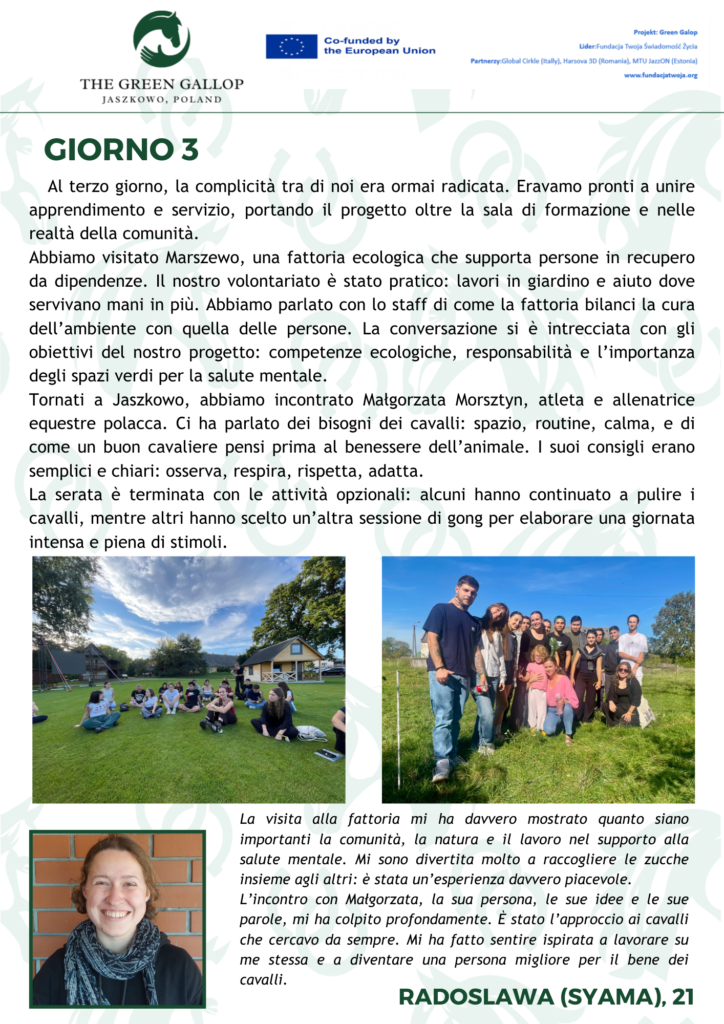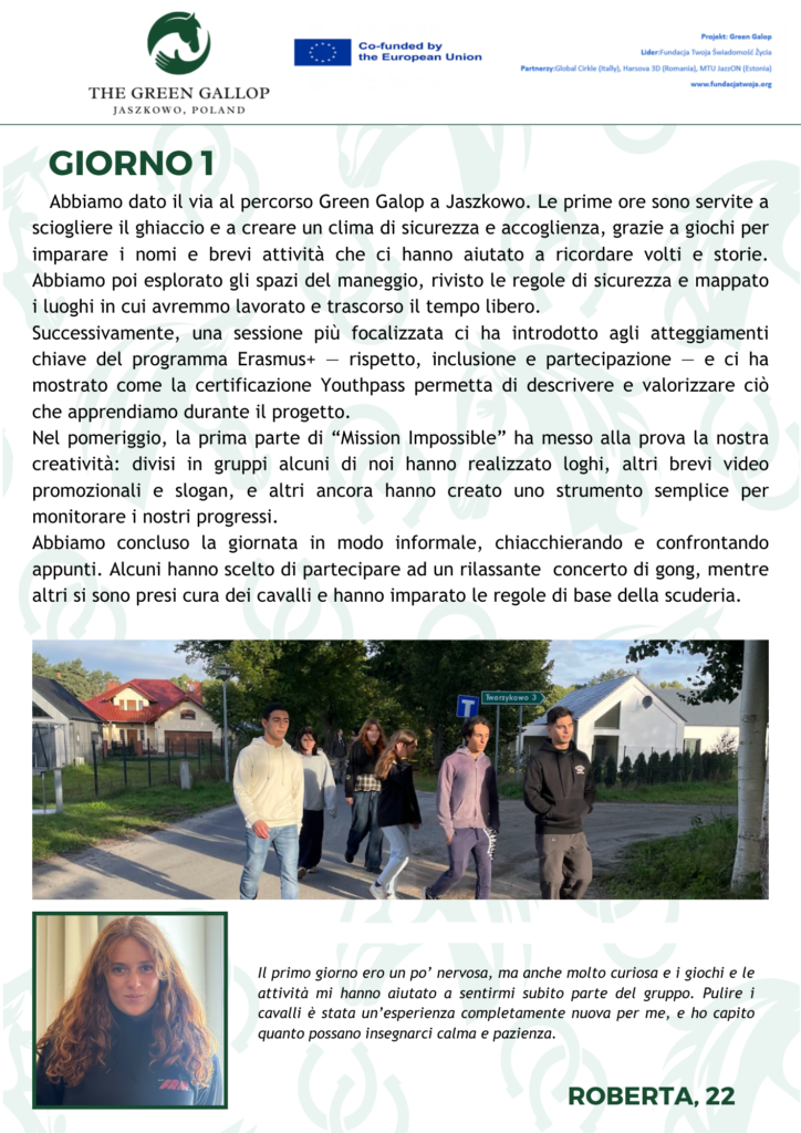_GREEN GALLOP BROCHURE ITA Broszura To efekt pracy uczestników projektu Green Gallop Jaszkowo 2025, który odbył się w dniach 18-24 wrzesnia 2025 w Centrum Hipiki Jaszkowo